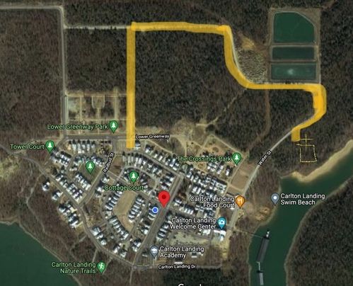 Head out from Lower Greenway, turn right onto the construction road, go past the water treatment pools and park on the north side of the church.